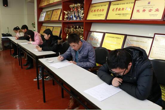 繼11月19日“橋梁工程措施項目計價培訓及簽證辦理工作總結交流會”后,為進一步鞏固培訓效果,檢驗各項目預算員對專業知識及簽證辦理的掌握程度,11月25日下午6點,武漢天創市政審計部在公司會議室組織21名預算員進行了摸底考試。考試現場,各預算員沉著答題、認真應考。