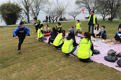 當50余輛造型獨特的寬胎“胖胖車”一同騎行在東湖湖畔時,女職工們清脆爽朗的笑聲和顏色各異的自行車立即拉成了一道靚麗的風景線。從磨山景區南門出發,騎行隊伍沿著環湖的綠道順勢而行,一路領略東湖壯麗風景,在歡聲笑語中抵達磨山北門楚城門口。集合合影后,活動人員在草坪上鋪開野餐布,分為三個小組開始游戲。不論是經典的“丟手絹”還是緊張刺激的“逢七過”,都讓在場的每一個人在參與這樣的集體活動時體驗到了無窮的樂趣。游戲中接受懲罰的人需要進行才藝展示,武術、合唱以及員工子女帶來的舞蹈,甚至是簡單的俯臥撐,都惹得眾人捧腹連連。隨后,職工們根據自己的喜好,兵分兩路,乘坐索道纜車或者徒步攀登到達楚天臺,觀賞了精彩的編鐘樂舞表演,俯瞰了東湖勝景。