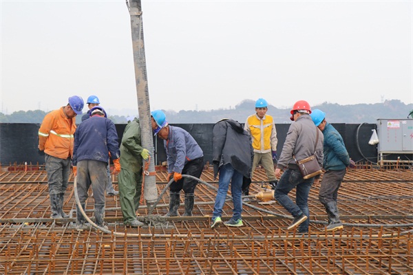 墨水湖北路工程作為公司首個跨湖工程,受到了公司上下的高度關注。該項目部秉持著“安全為了生產,生產必須安全”的生產理念,在安全文明施工方面嚴格把關,組織專班時刻檢查現場施工情況,及時排除安全隱患。在此前提下,項目部一鼓作氣,連續進行了模板鋪設、鋼筋綁扎、波紋管穿射等多項施工,經檢驗合格后,正式開始了湖上預應力箱梁的混凝土澆筑工作。現場由兩臺混凝土泵車同時作業,現場人員分成兩個小組,在同一斷面上并排進行混凝土澆筑,歷經一天一夜,于3月21日上午8:30順利完成了共計1200立方米的混凝土澆筑工作。公司總工辦以該工程箱梁澆筑現場為示范點,組織了各項目技術負責人對橋梁施工箱梁砼澆筑技術進行了觀摩學習。